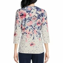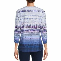 Discount π Allison Daley Petite Size Shibori Striped Print 3/4 Sleeve V-Neck Knit Twofer Top π